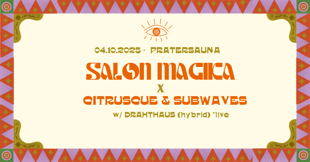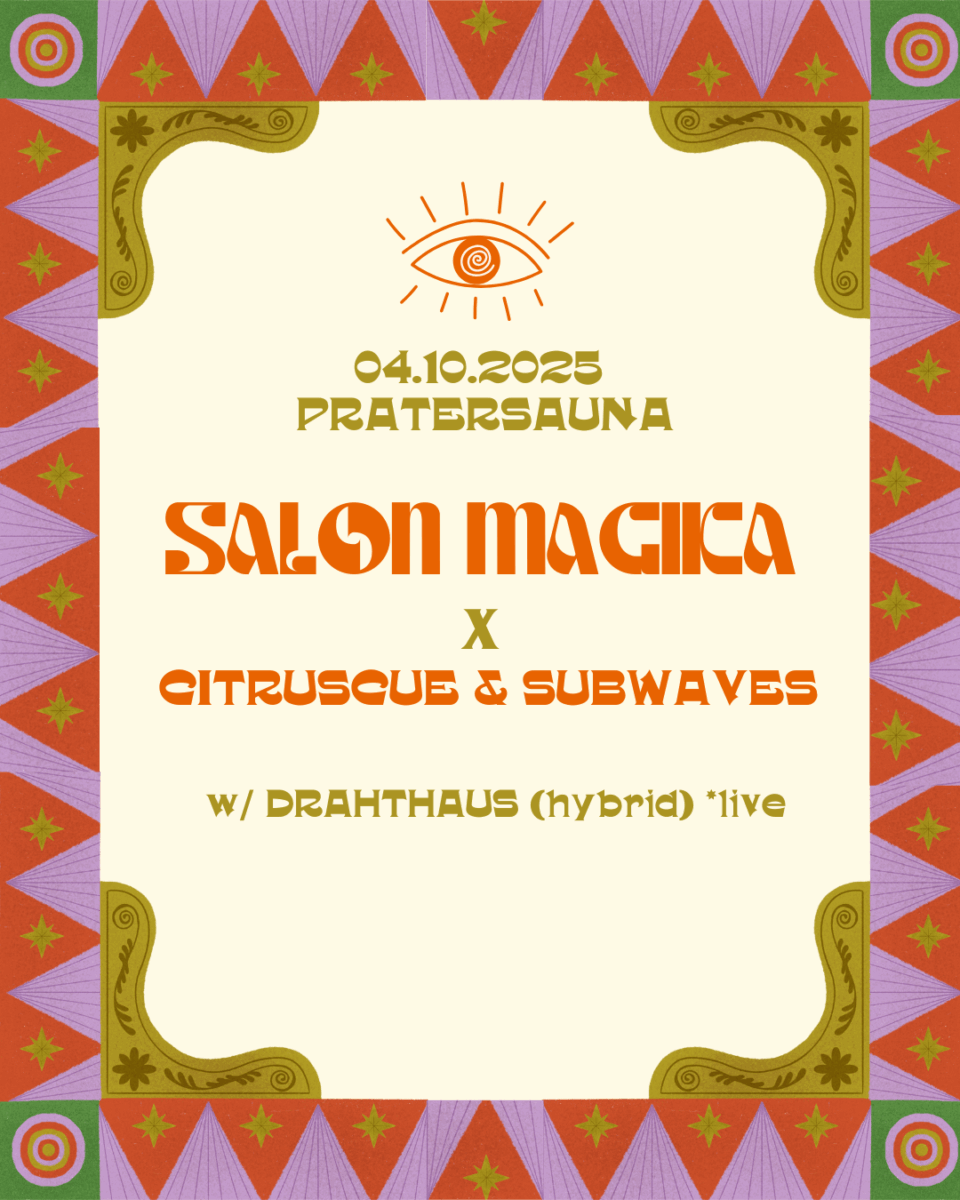 Salon Magika is back - in a new venue - the fresh and shiny Pratersauna! Together with the CitrusCue and Subwaves collectives, and featuring our headliner Drahthaus, we’ll be bringing tasty beats and shaking colors colors to the heart of the Prater.